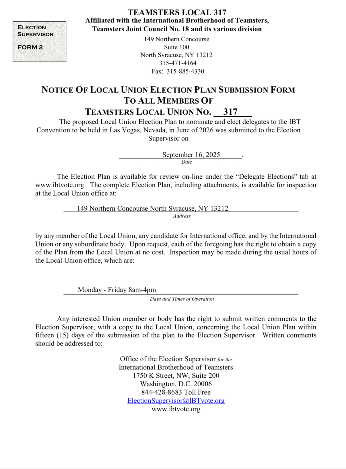 Notice of Local Union Election