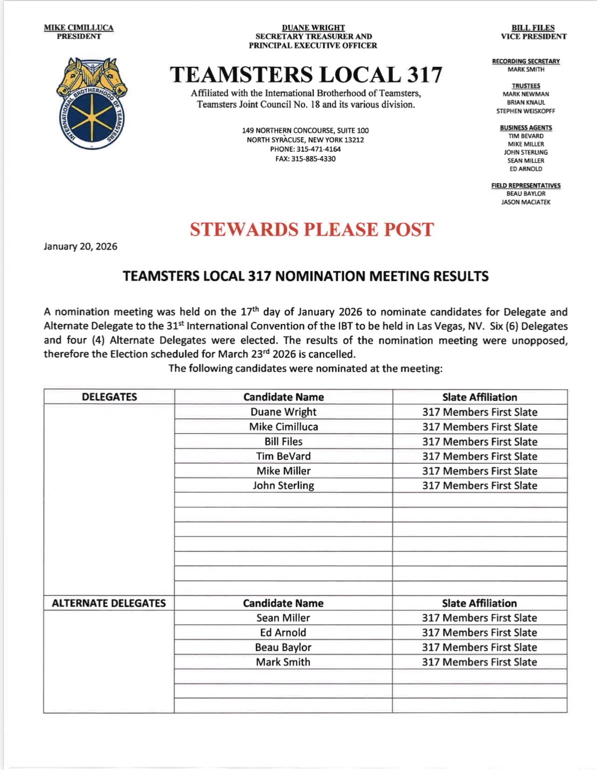Why Labor Unions Can’t Ignore ICE Teamsters Local 355 CIRB Finds Misleading Communication and Carelessness In IAMAW Handling Of “6-Day Rule” Policy Grievance AMFA 2026 CBA Update Police Officer's Association of CCSD 2026 CBA Update Police Officer's Association of CCSD 2026 CBA Update Police Officer's Association of CCSD Teamsters Local 231 Executive Board Teamsters Local 231
